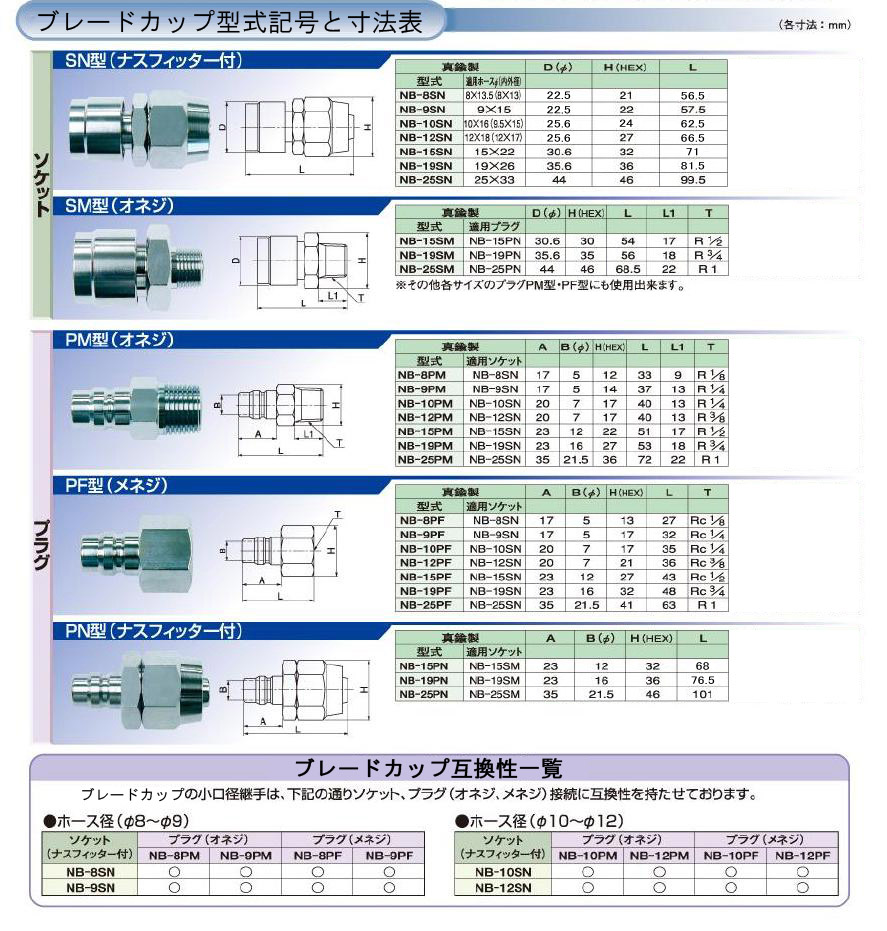 One-touch coupling for braided hose - ข้อต่อสัมผัสเดียวสำหรับท่อถัก ปัจจุบัน ท่อใบพัดมีให้เลือกใช้แบบที่มีข้อต่อสวมและถอดได้แบบสัมผัสเดียว แทนที่จะเป็นข้อต่อแบบคงที่ คุณสมบัติ - ข้อต่อ Nascup ประกอบด้วยข้อต่อ Nasfitter สำหรับท่อมีใบมีดและข้อต่อแบบสัมผัสเดียว ช่วยให้เชื่อมต่อและถอดท่อออกจากอุปกรณ์ ฯลฯ ได้ง่าย
