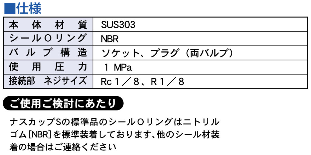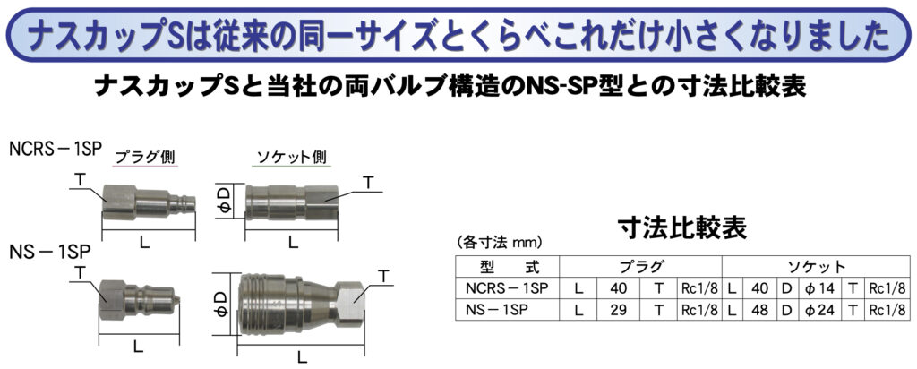 Extra compact coupling with double valve NCRS S type S ข้อต่อพิเศษขนาดกะทัดรัดพร้อมวาล์วคู่ NCRS S ชนิด S - คัปปลิ้งชนิด AS ชนิดสัมผัสเดียวช่วยให้สามารถเชื่อมต่อด้วยสัมผัสเดียวโดยเพียงแค่เสียบซ็อกเก็ตเข้าไปในปลั๊ก โดยไม่ต้องใช้งานปลอกบนตัวซ็อกเก็ตเมื่อเชื่อมต่อ ซึ่งแตกต่างจากวิธีการทั่วไป ประสิทธิภาพการทำงานได้รับการปรับปรุงอย่างมากในพื้นที่ที่มีการติดและการถอดออกบ่อยครั้ง คุณสมบัติ - นี่คือข้อต่อวาล์วคู่ขนาดกะทัดรัดพิเศษตัวแรกของอุตสาหกรรมที่มีเส้นผ่านศูนย์กลางภายนอกสูงสุด φ14 - ทั้งซ็อกเก็ตและปลั๊กมีกลไกวาล์วในตัว ดังนั้นของไหลจะไม่รั่วไหลเมื่อถอดปลั๊กออก - กลไกวาล์ว มีพื้นที่ทางไหลขนาดใหญ่ โครงสร้างวาล์วอัตราการไหล - มีรูปทรงการเชื่อมต่อที่หลากหลาย รวมถึงเกลียวในและสำหรับท่อฟลูออรีน - - [อย่างไรก็ตาม มันเป็นรายการสั่งพิเศษ]