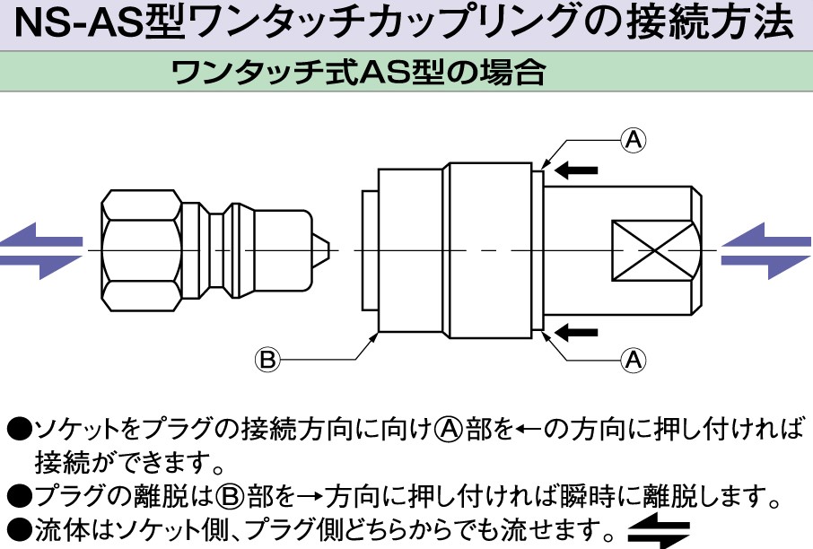 คัปปลิ้งชนิด AS ชนิดสัมผัสเดียวช่วยให้สามารถเชื่อมต่อด้วยสัมผัสเดียวโดยเพียงแค่เสียบซ็อกเก็ตเข้าไปในปลั๊ก โดยไม่ต้องใช้งานปลอกของตัวซ็อกเก็ตชนิดการเชื่อมต่อสายไฟเหมือนวิธีทั่วไป ประสิทธิภาพการทำงานได้รับการปรับปรุงอย่างมากในพื้นที่ที่มีการติดและการถอดออกบ่อยครั้ง